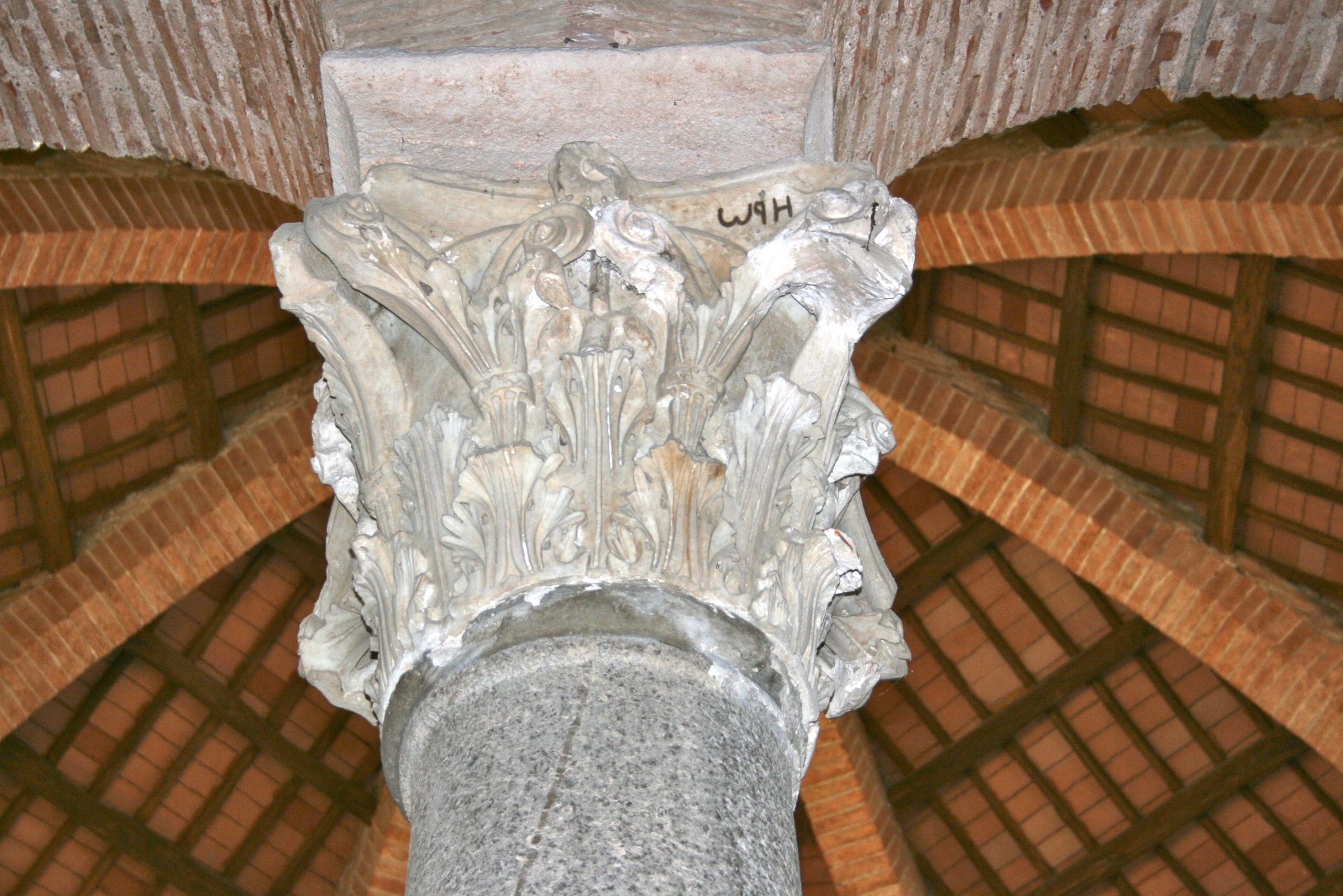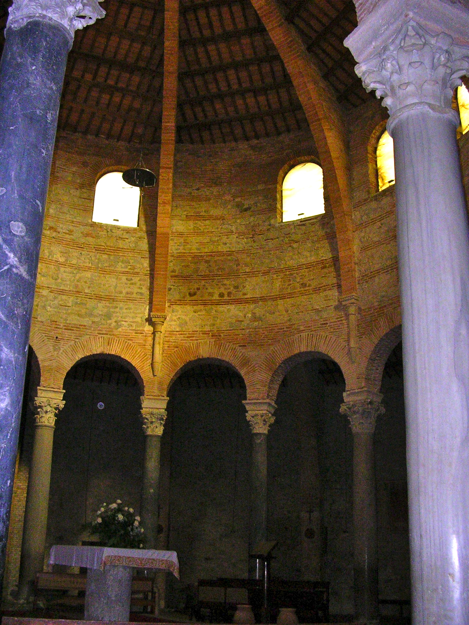 Inside the church, that was dedicated to St. Michael the archangel, you will see a ring of piers created with sixtheen Roman columns and their respective capitals, taken from a pagan temple and used to build the new VII century building.