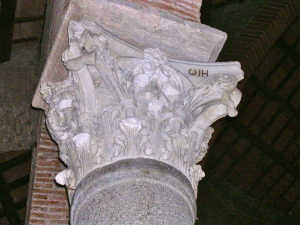 Otto sono le misteriose epigrafi a lettere greche, incise e ripassate con vernice nera soltanto su quattro dei capitelli corinzi: quelli in corrispondenza del braccio nord/sud della croce greca.