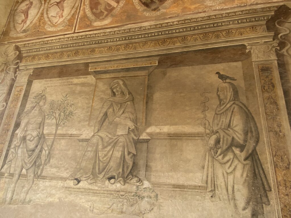 Eppure, nonostante la presenza del corvo, i diversi storici dell’arte che negli ultimi due secoli hanno studiato l’affresco di San Gimignano hanno continuato ad interpretare questa figura come allegoria della Prudenza.