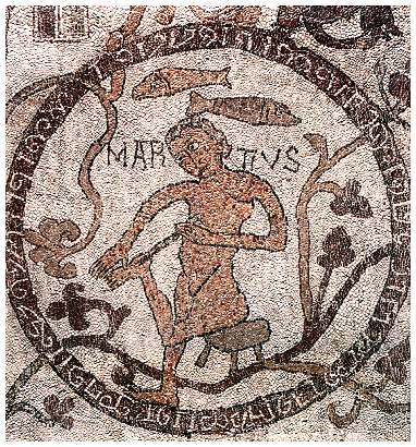 Interessante è a mio avviso anche il confronto con un altro cavaspina di età medievale, più antico di quello perugino di circa un secolo, che troviamo rappresentato nel grande mosaico pavimentale della cattedrale di Otranto: anche qui il soggetto è associato al mese di marzo, ma a differenza del personaggio della Fontana Maggiore, che è vestito ed è accostato al segno zodiacale dell’Ariete, il cavaspina di Otranto è nudo ed è associato al segno dei Pesci. Il diverso simbolo dello zodiaco si spiega peraltro facilmente, considerando che il passaggio del Sole nella costellazione dei Pesci avviene tra il 20 febbraio e il 20 marzo, dunque a cavallo tra i due mesi.